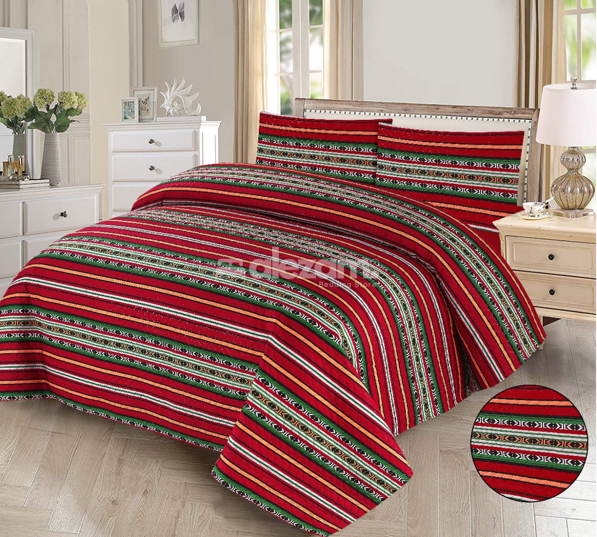 3 Pc King Size Quilted Bedsheet Striped Design Alezam