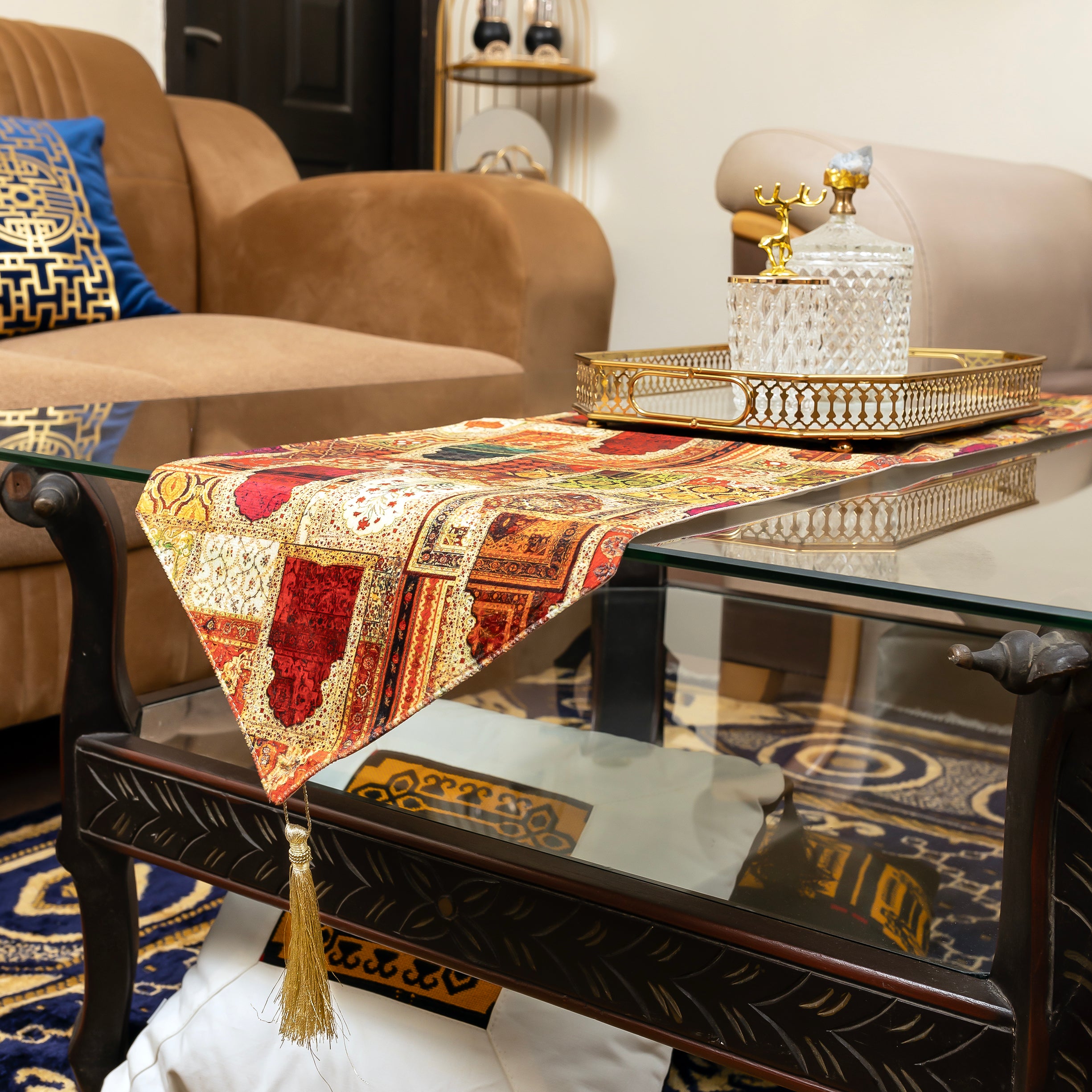 3 Pcs Luxurious Oriental Digital Print Dining Room Table Runner Decor