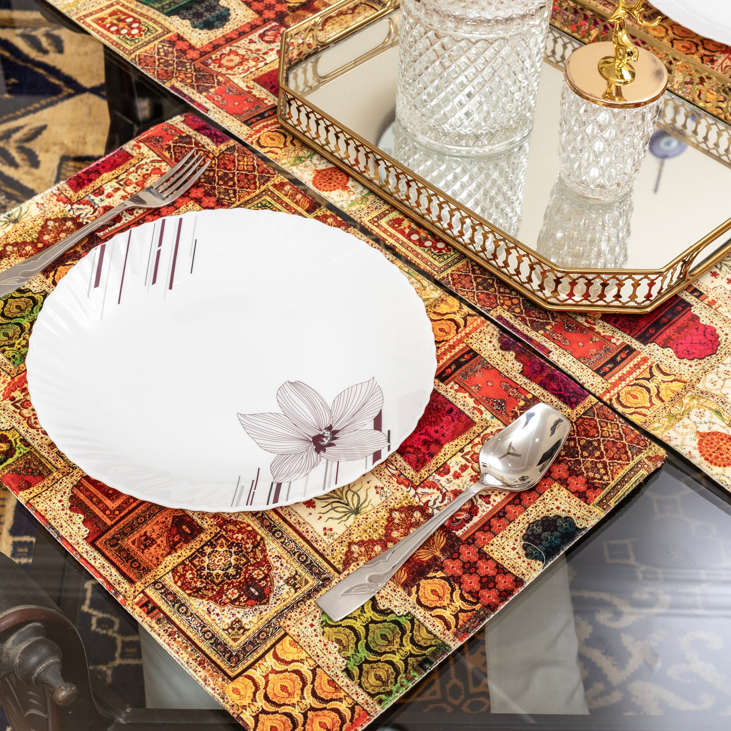Elevate your home decor instantly with this stunning 3 Pcs Digital Print Table Runner and Mat Set from Alezam Bedding Store. Perfect for modern dining rooms, kitchens, or coffee tables, this elegant table linen set is the ultimate statement piece. Each luxurious set includes one long runner and two coordinated placemats, providing a complete solution for sophisticated table dressing. Our high-definition digital printing ensures rich, fade-resistant colors and intricate detailing whether you choose the bold Black and White Chevron, the warm Bohemian Tapestry Patchwork, or the exquisite Floral Botanical designs. These easy-care, durable fabric runners protect your surfaces while adding a touch of designer style to any occasion, from daily meals to festive gatherings. Upgrade your entertaining essentials with this must-have home textile accessory set today. The complete package includes: 01 Table Runner (54 inches Length) and 02 Table Mats (12x18 Inches).