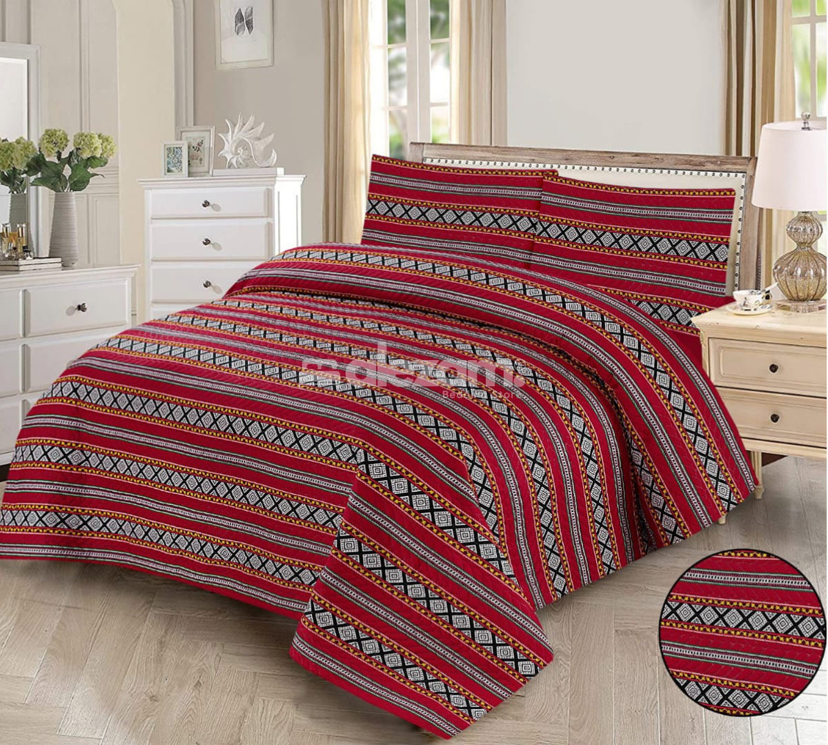 3 Pcs Quilted Bedsheet Gray Red Tribal Print by Alezam