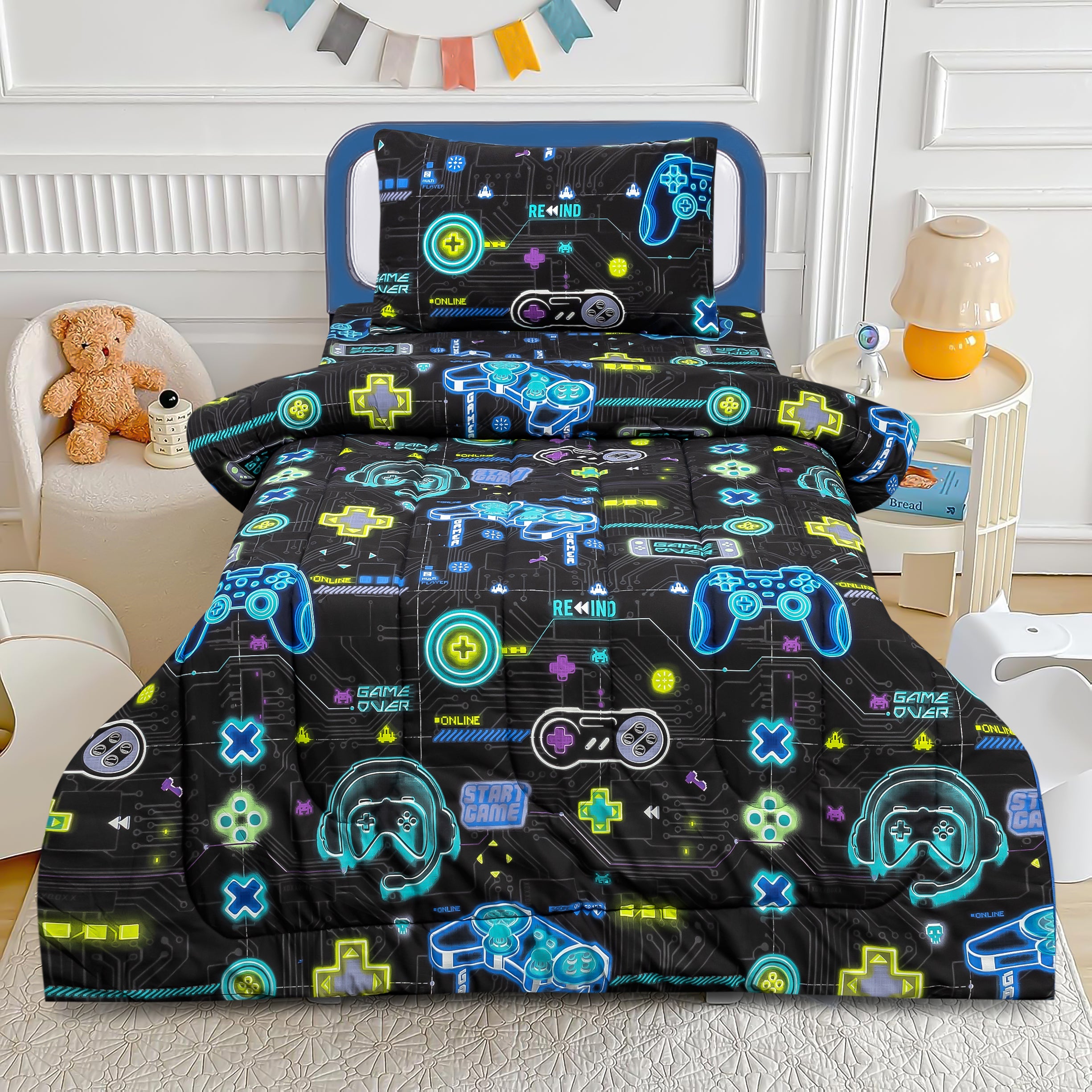 Buy Game Console Design Bed Sheet Set for Kids Cotton Quilted Comforter by Alezam
