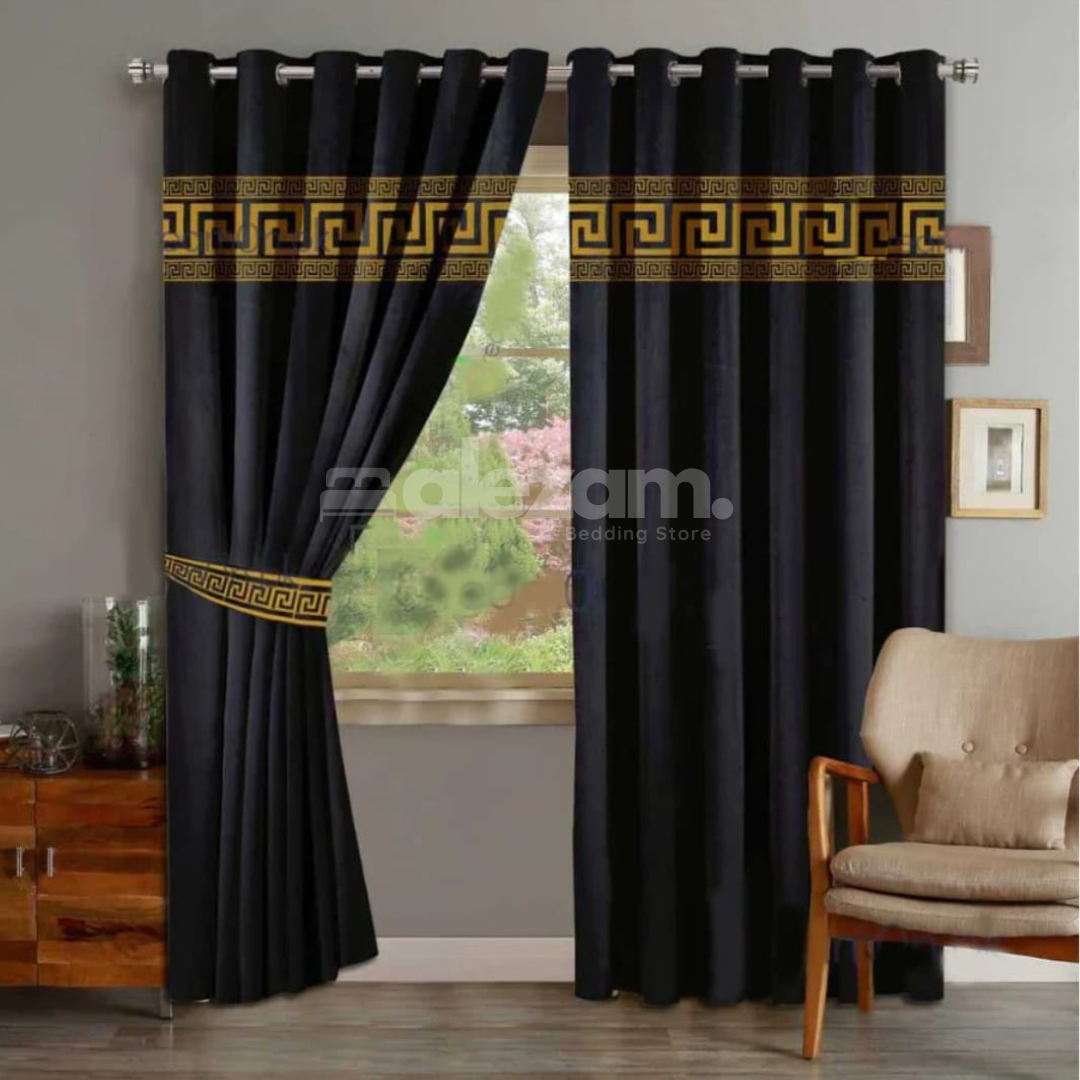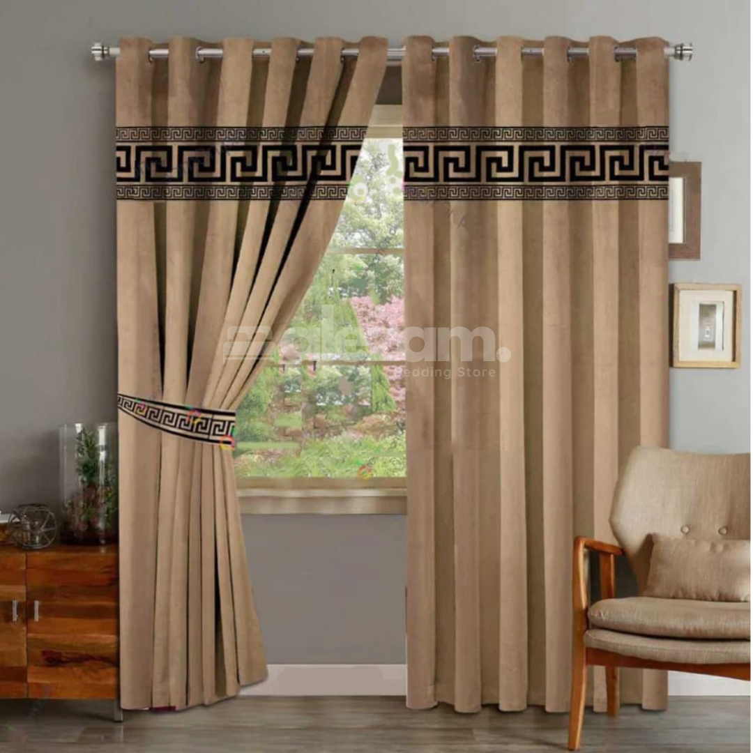 Crafted from premium velvet, these curtains add a touch of sophistication to any room. The intricate laser applique border enhances their visual appeal, making them a standout addition to your living room, bedroom, or any space in need of a stylish upgrade.