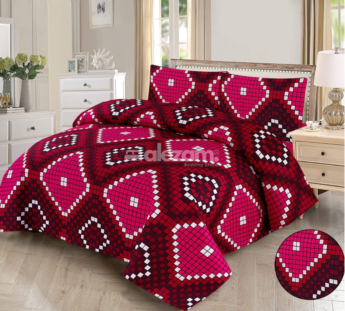 Red Pink Print 3 Pcs Quilted Bedsheet Set by Alezam
