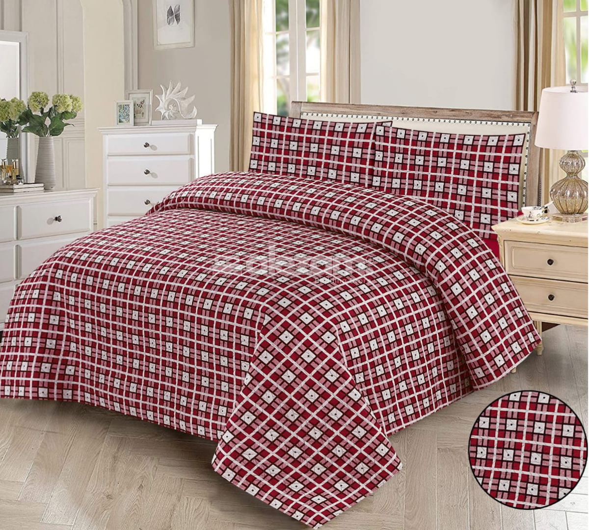 Red White Plaid 3 Pc Quilted Bedsheet Set by Alezam